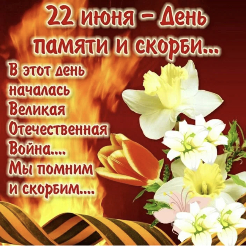 22.06.202122 июня — День памяти и скорби, установленный указом президента РФ от 8 июня 1996 года. Эту дату отмечаем как День памяти, День гордости и скорби о тех, кто не пожалев жизни, не вернулся с кровавых полей сражений за свободу и независимость Родины.