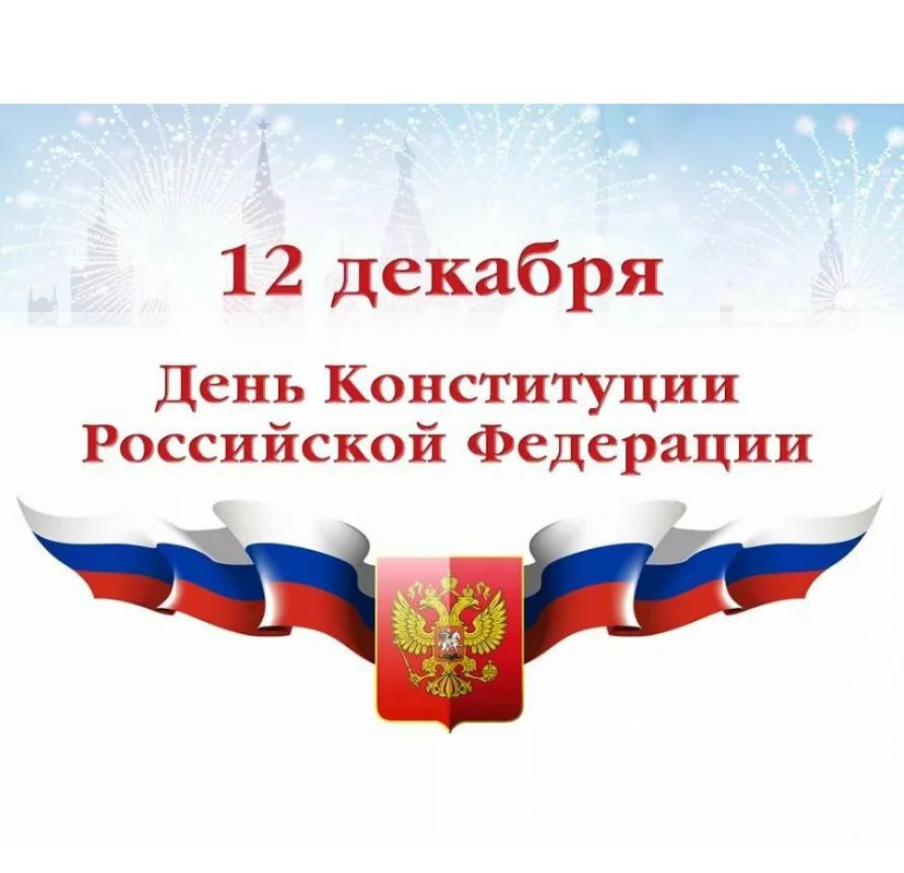 12.12.2021Уважаемые соотечественники, поздравляю с Днём Конституции Российской Федерации! Конституция — это залог стабильности, мира и согласия в стране, незыблемый фундамент демократического развития государства! Благодаря ей мы уверенно шагаем по жизни в стабильности и независимости. Желаю всем мирного неба над головой, согласия и уверенности в завтрашнем дне, пусть счастье и благополучие царит в каждой семье, а наша Родина процветает и остаётся самой сильной державой.
